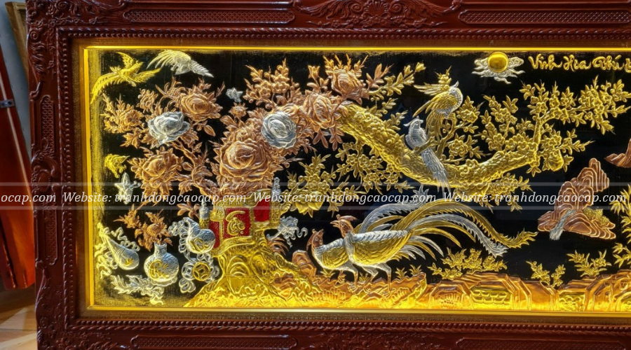 Tranh Vinh Hoa Phú Quý Đồng Vàng Dát Vàng Bạc 1m7x90cm