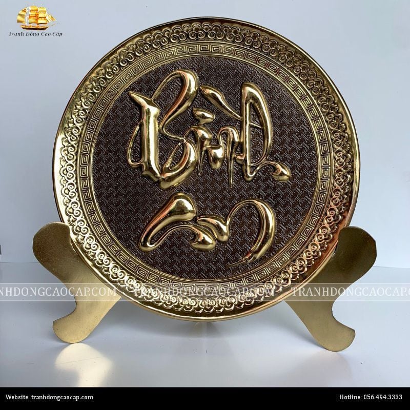 Tranh đĩa chữ Bình An đường kính 21cm nền giả cổ
