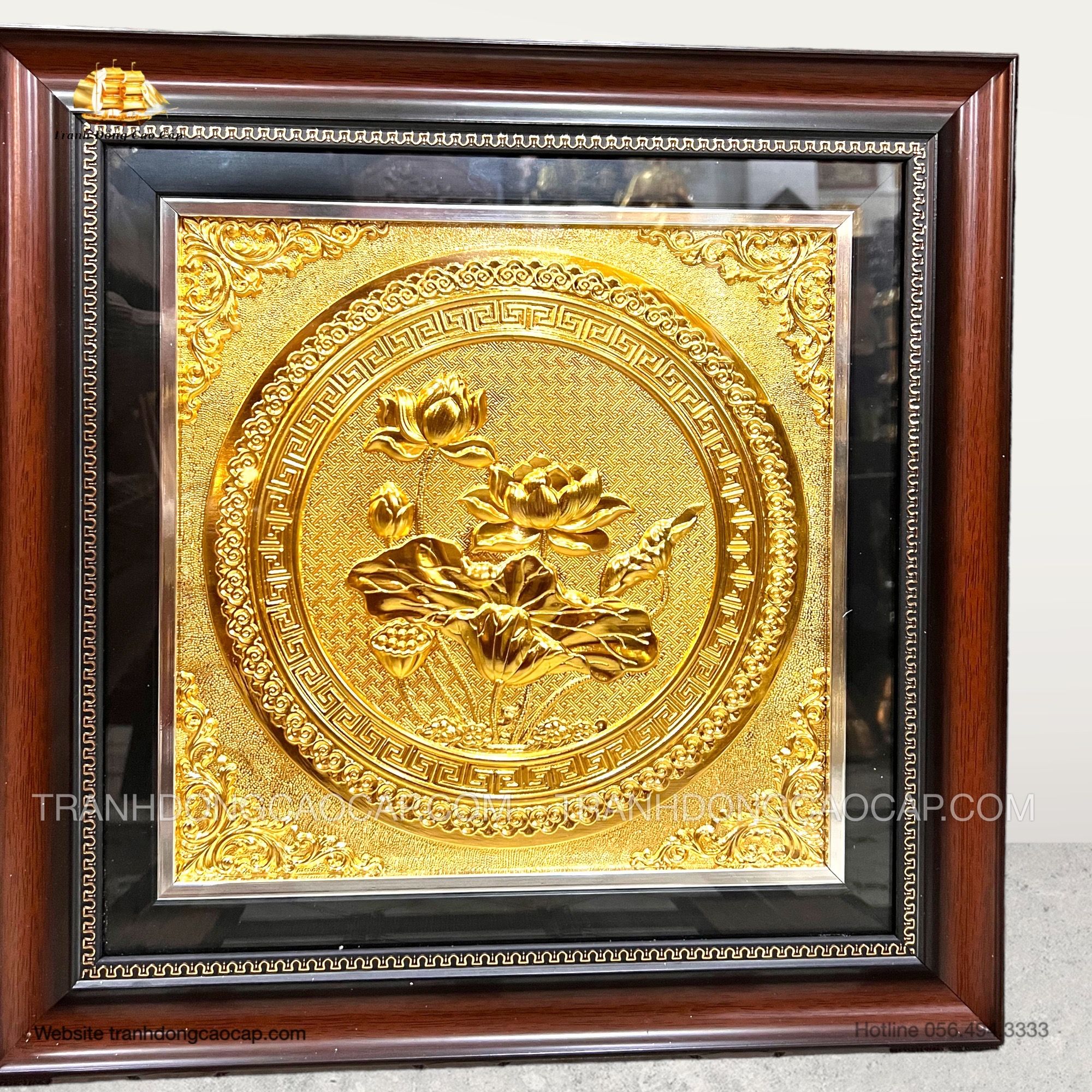 Tranh Hoa Sen Mạ Vàng 24K ( kích thước 42cm x 42cm )