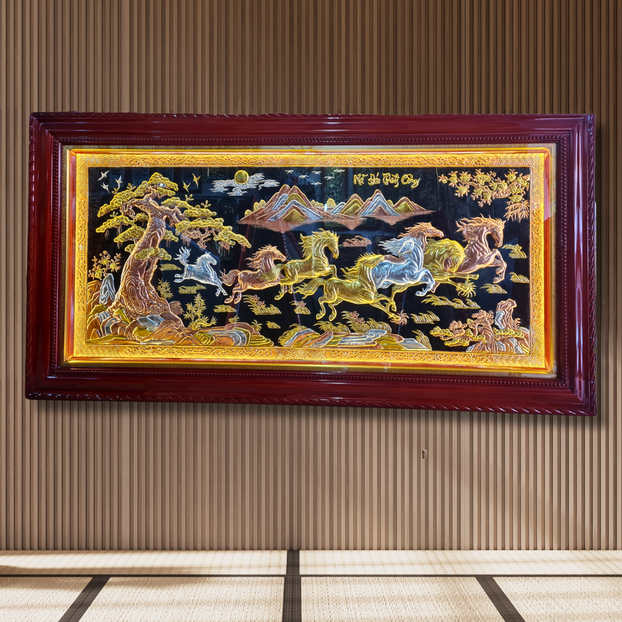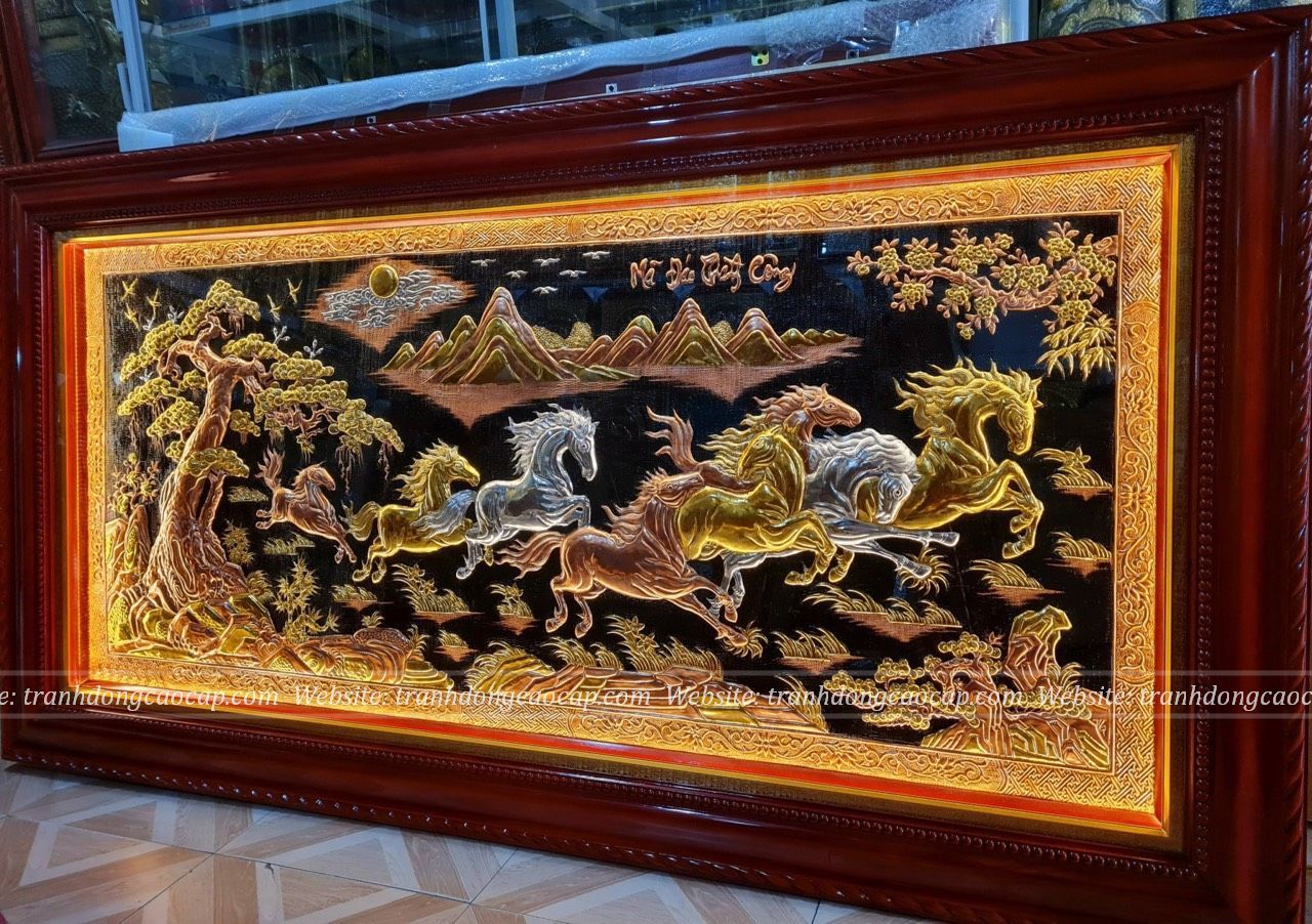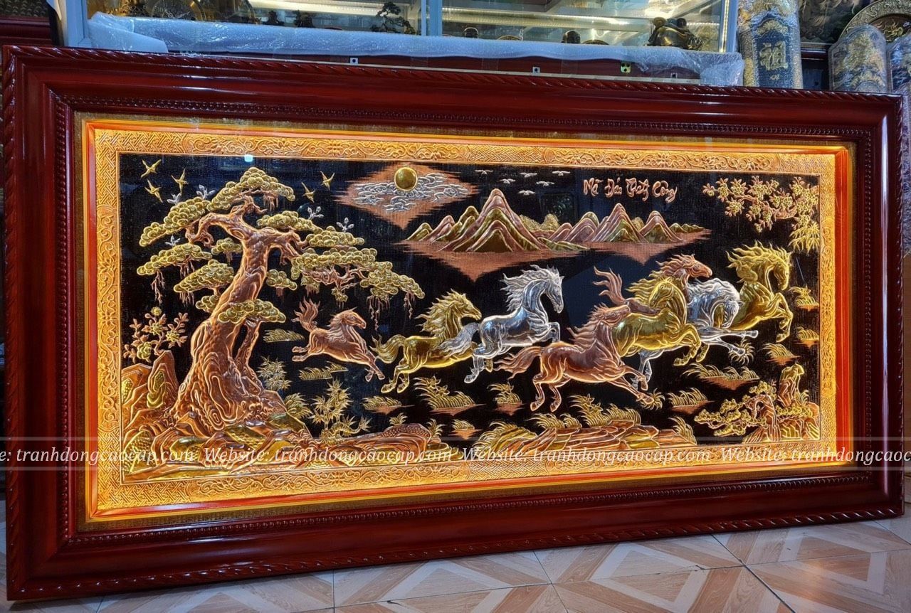 Tranh Mã Đáo Thành Công Bằng Đồng Dát Vàng 2m3x1m2
