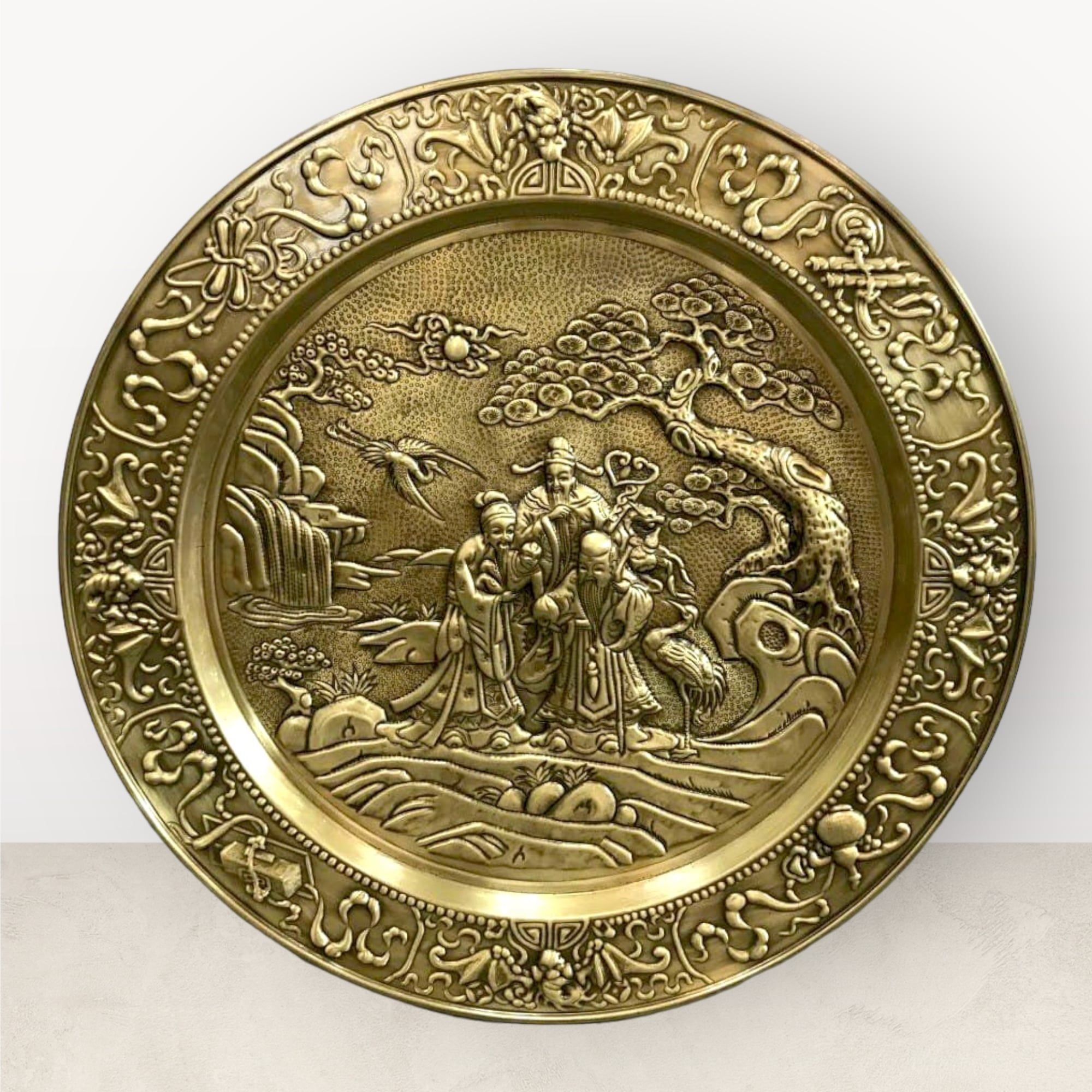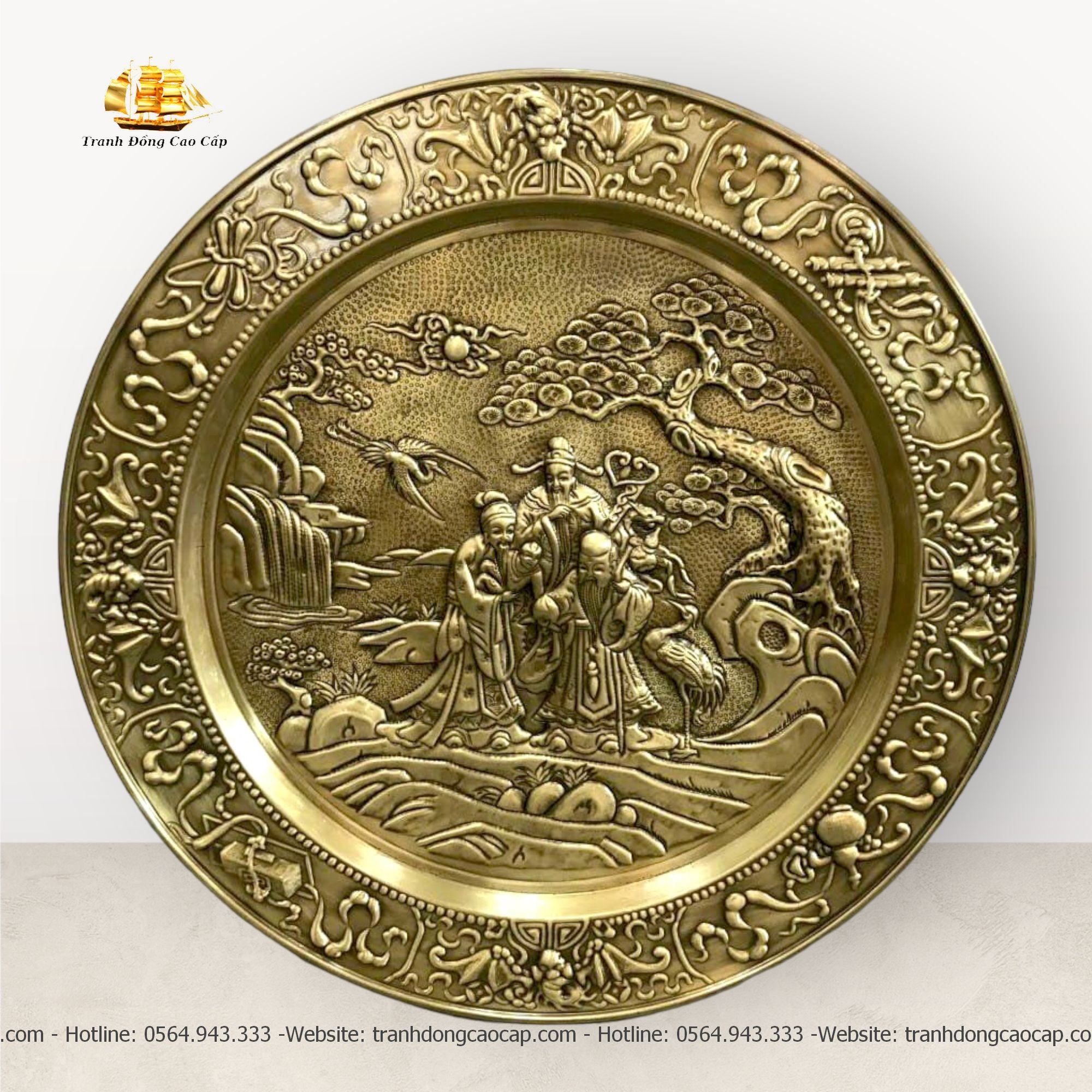 Tranh mâm đồng tam đa màu giả cổ đường kính 52cm
