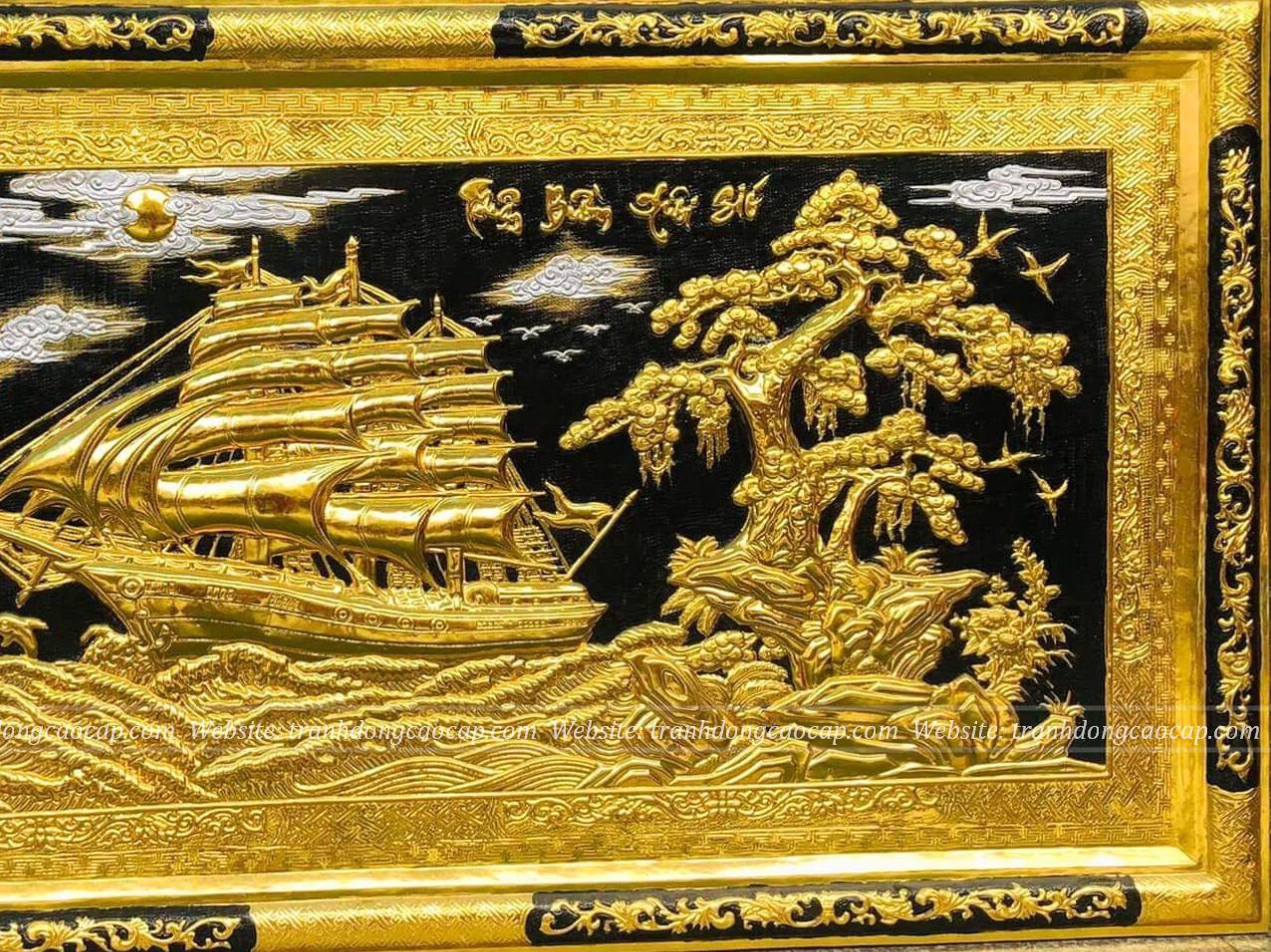 Tranh Thuận Buồm Xuôi Gió Đồng Vàng Dát Vàng 1m7x90cm