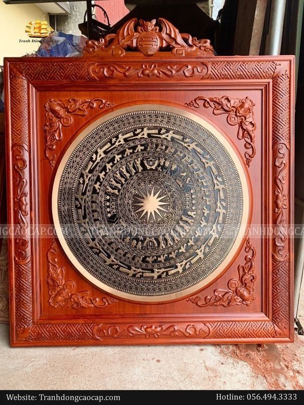 Tranh Trống đúc khung dơi KT 120x120 cm-ĐK mặt trống 80cm