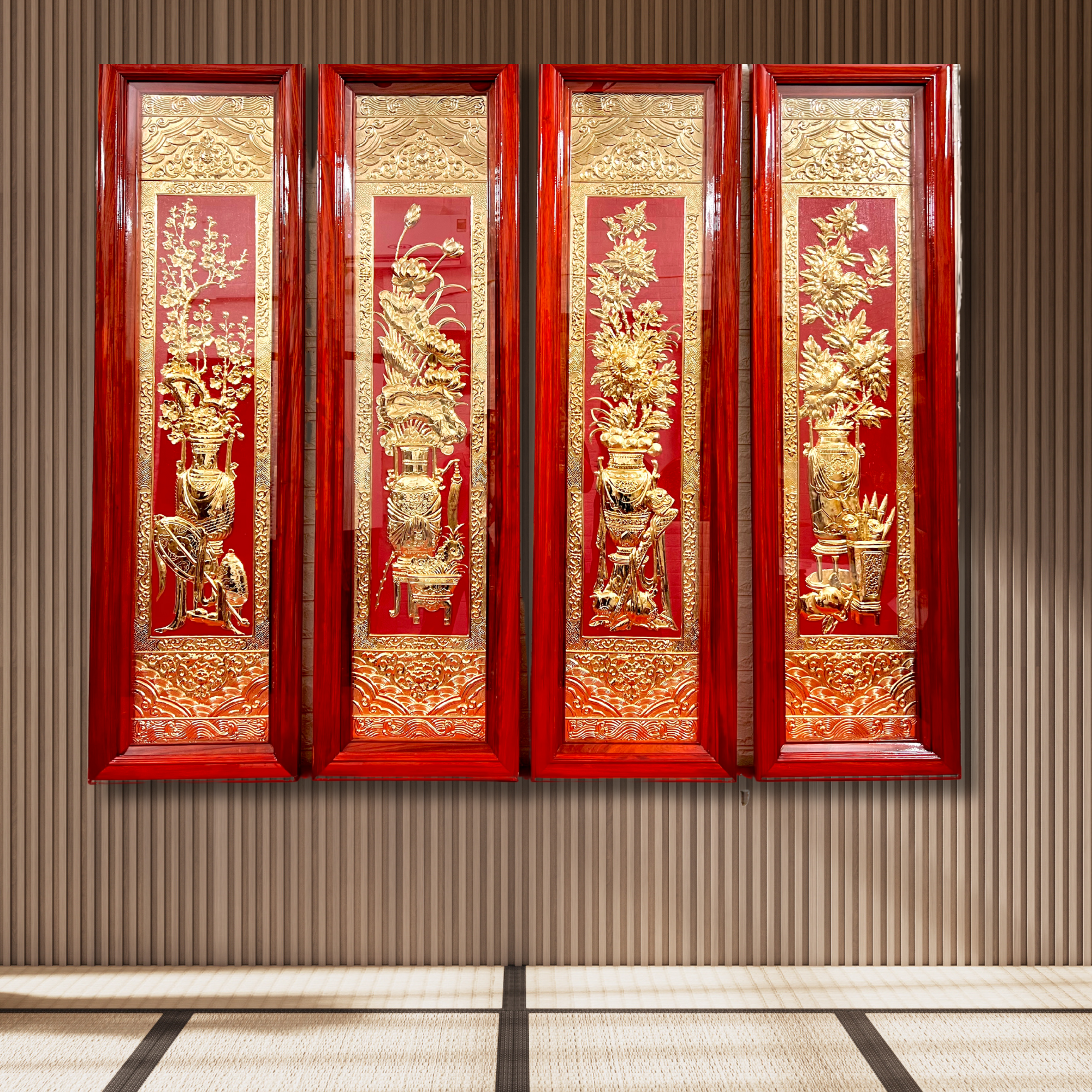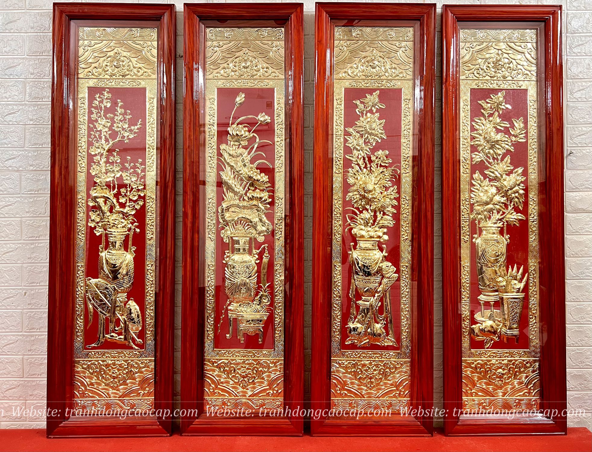 Tranh Tứ Bình Đồng Vàng Mạ Vàng 1m46x41cm