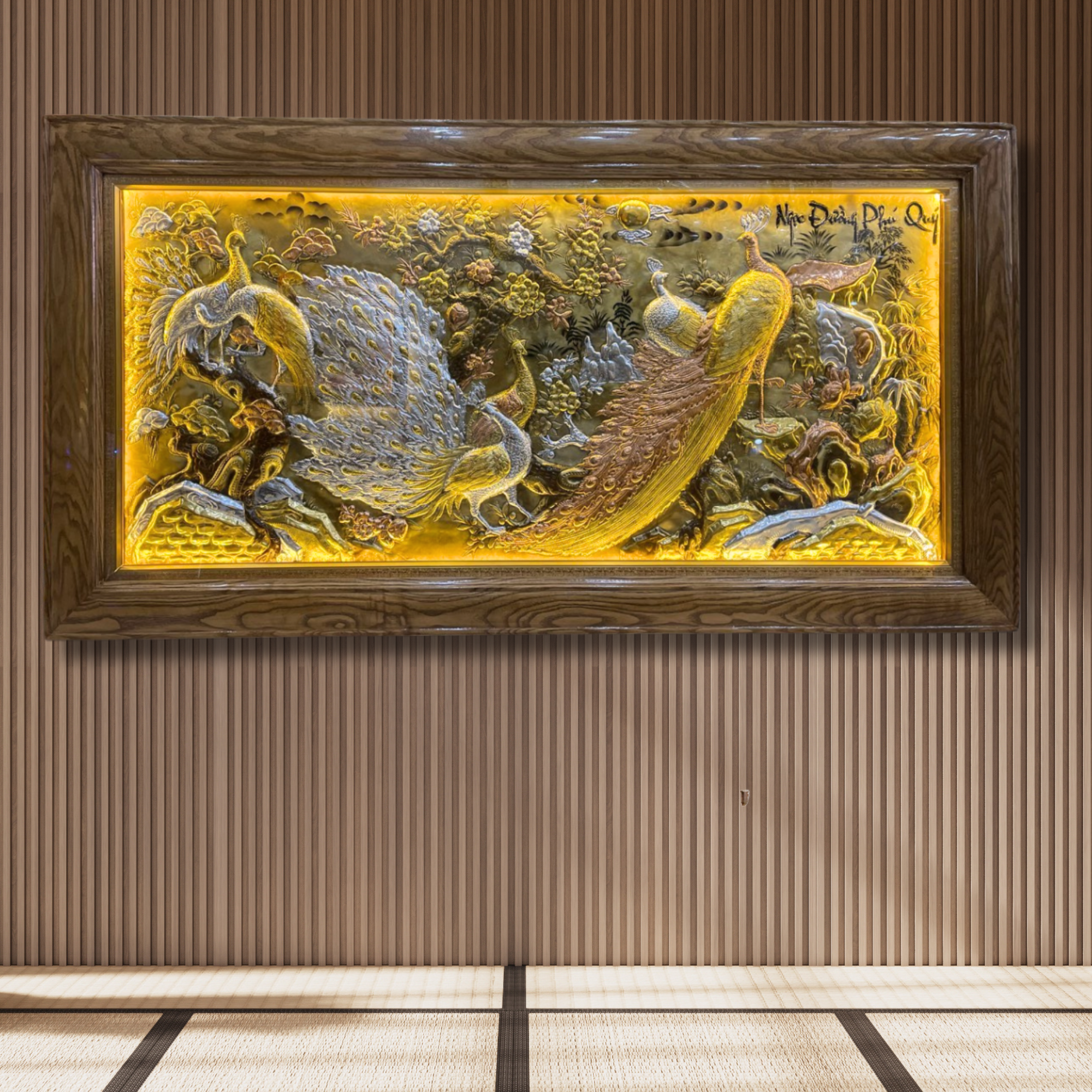 Tranh Vinh Hoa Phú Quý Đồng Vàng Dát Vàng Bạc 2m3x1m2