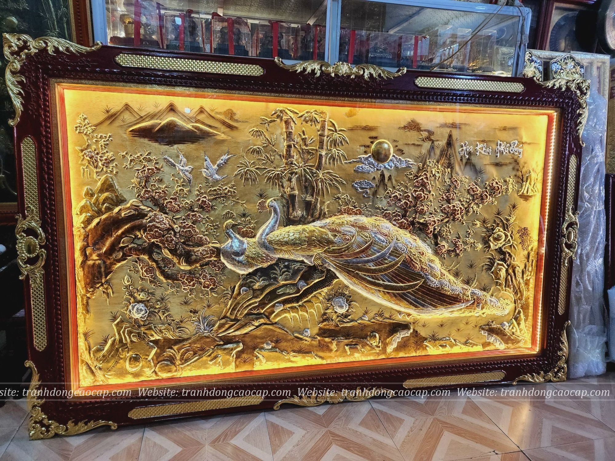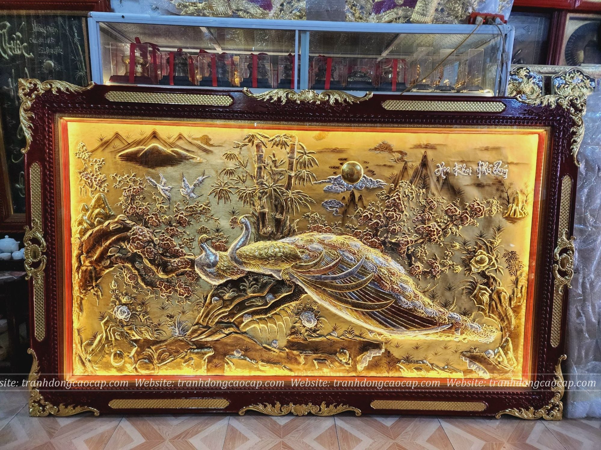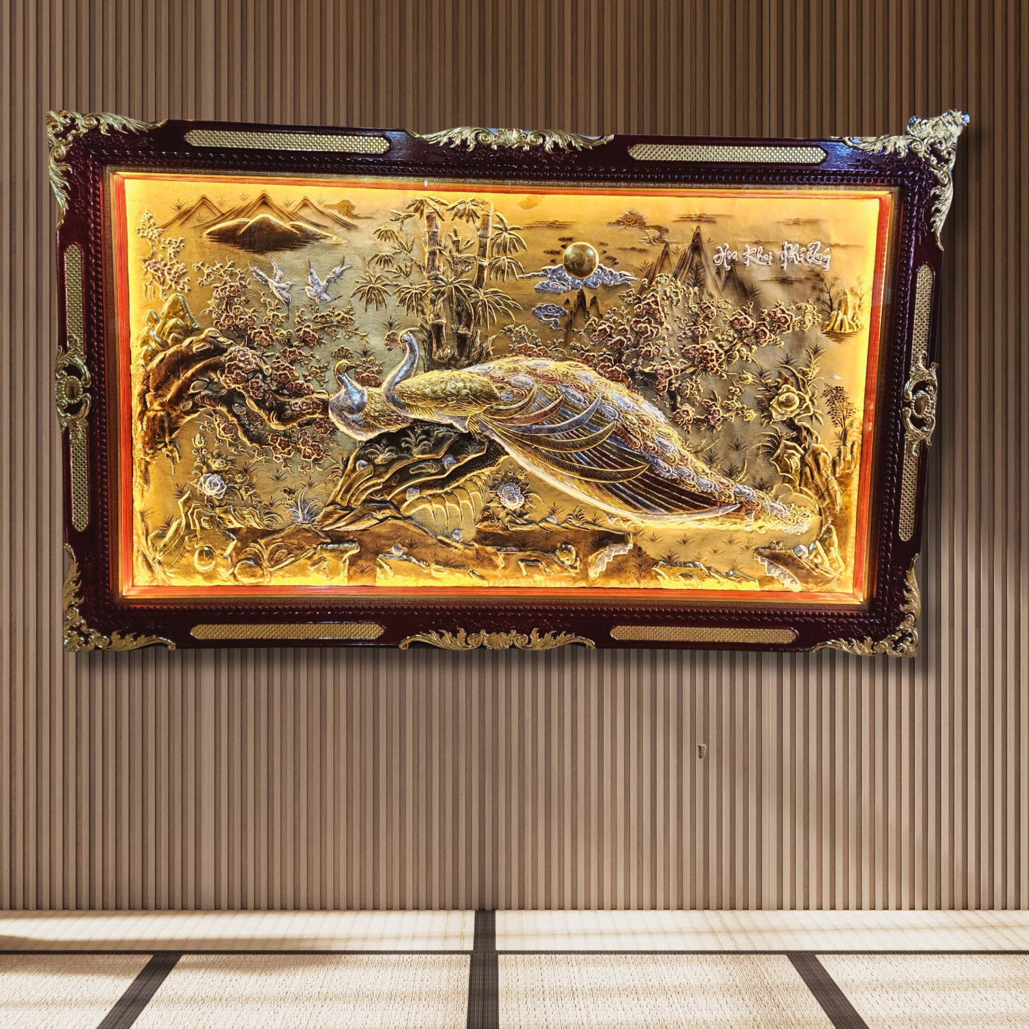 Tranh Vinh Hoa Phú Quý Đồng Vàng Dát Vàng Bạc 2m55x1m55